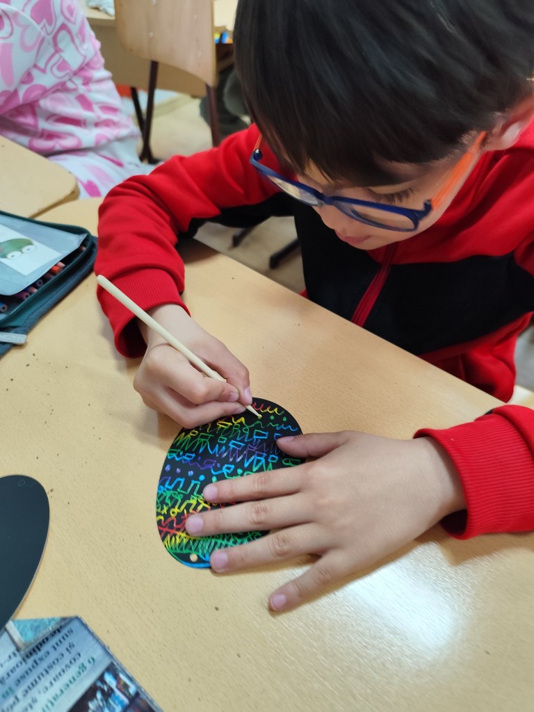 - vânătoarea ouălor de ciocolată din sala de clasă, precum și cadoul primit (ambele surprize pregătite de Prietenii Veseliei pentru cei 22 elevi ai clasei şi doamna lor învăţătoare), și anume Imnul Clasei noastre, Clasa bufnițelor exploratoare și înțelepte, au fost cireașa de pe tort a zilei de marți,15.04.2025