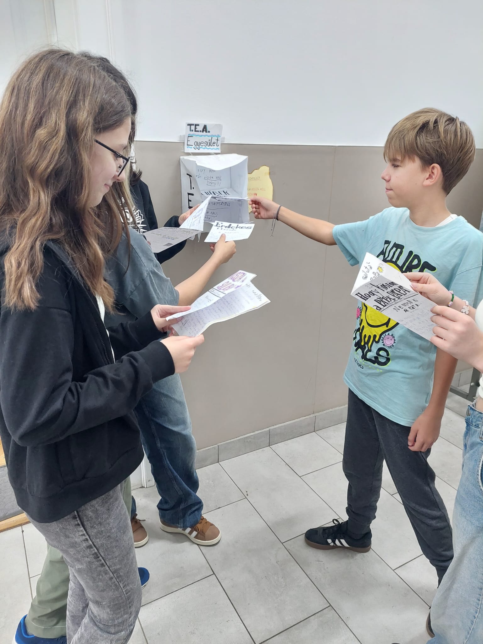 Pentru ca ziarul să fie citit de către toți colegii din școală, mai mici și mai mari, Edi, Titusz și Anita s-au apucat să confecționeze inclusiv un suport de perete, amplasat pe coridor, în imediata vecinătate a clasei lor, cu mențiunea ,,După o săptămână, trebuie adus înapoi!”