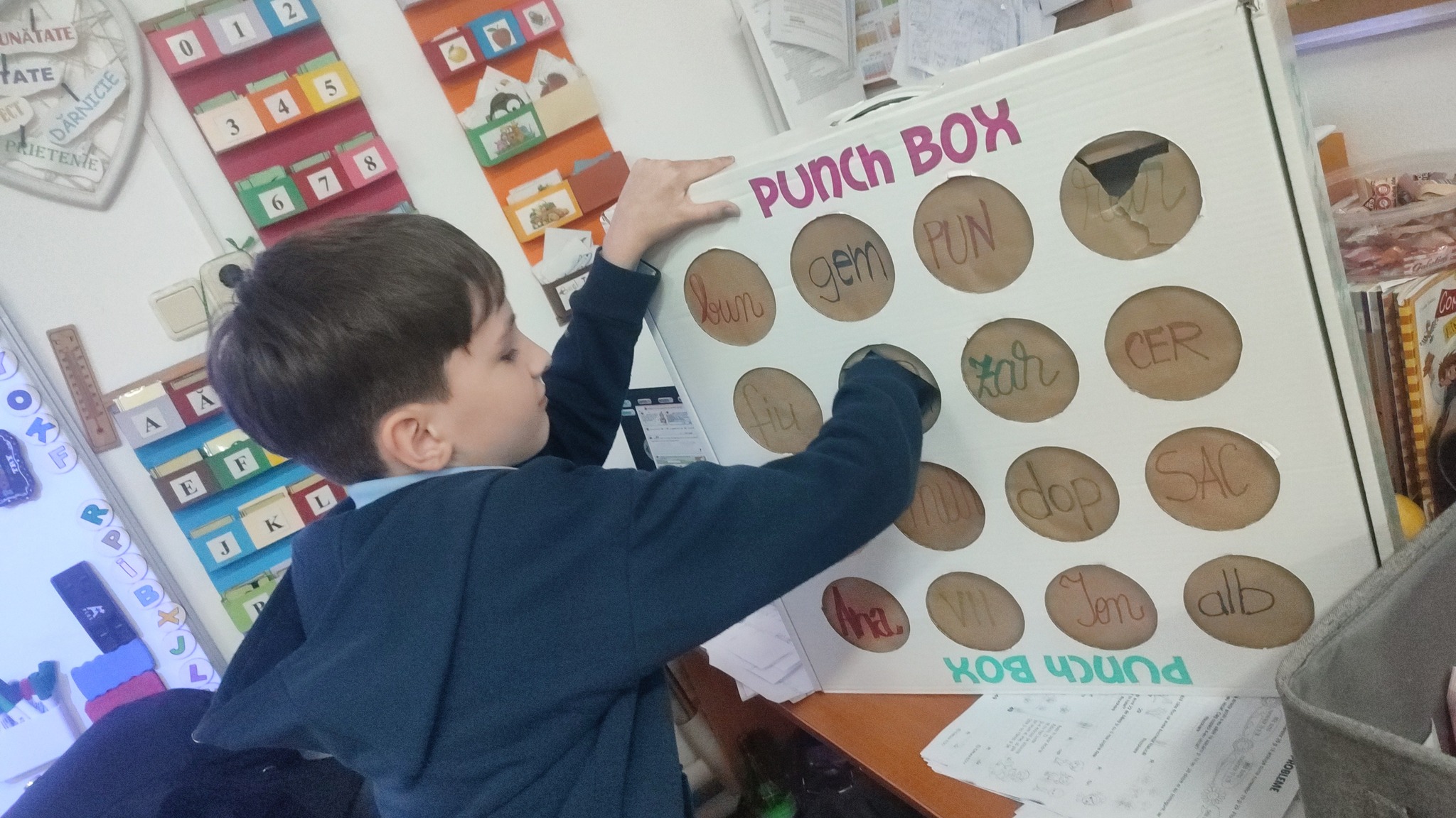 Am adus în fața elevilor o cuti, tip Punch Box, pe care o întâlnim de obicei la petrecerile copiilor, unde se ascund dulciuri. Este o cutie cu 16 cercuri în spatele cărora se lipește o hârtie colorată. Pe cele 16 cercuri am scris numere naturale de la 0 la 100. În interiorul cutiei în cele 16 locuri din spatele cercurilor am așezat tot atâtea provocări din viața de zi cu zi a elevilor. Învățătoarea spune un număr indicând o caracteristică a acestuia (nu direct) de exemplu: cel mai mic / mare număr, numărul din doua cifre cu suma lor 11, numărul cel mai mic / mare format din cifre identice, numărul format din două cifre consecutive crescător / descrescător, numărul care e succesorul / predecesorul lui etc. Copilul care recunoaște numărul vine și descoperă ce provocare ascunde acesta, spărgând cerculețul. Citește în fața clasei provocarea și o îndeplinește.