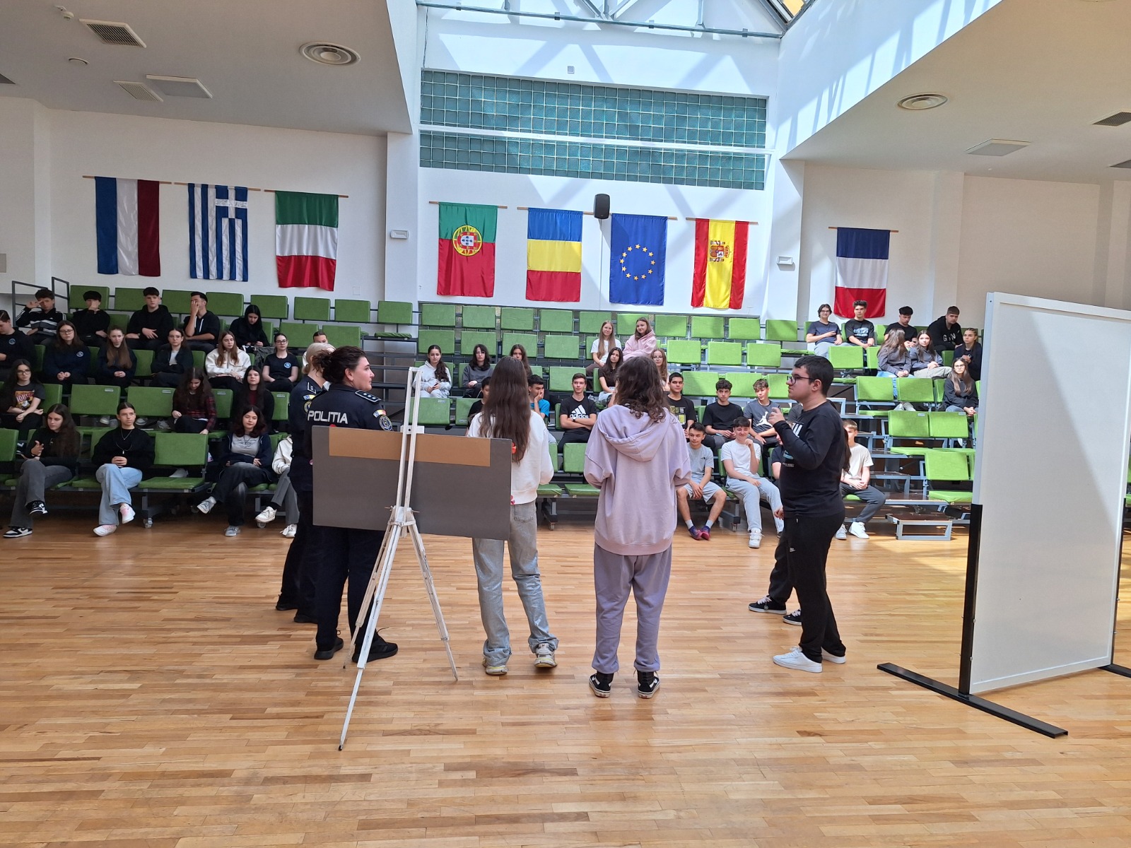 Ne-am bucurat să avem la activitate pe doamna comisar-șef Ilinca Șandor și comisar-șef Merce Delia de la IPJ Bihor, care au abordat acest subiect al consumului de substanțe interzise în rândul adolescenților, adaptat nivelului de vârstă al auditoriului, subliniind pericolul la care se pot expune aceștia cedând tentației de a le consuma, precum și implicațiile și consecințele asupra vieții lor personale, asupra familiei și asupra societății în general; aici am putea face un exercițiu de imaginație – cum ar arăta România, dacă s-ar droga întreaga ei populație?