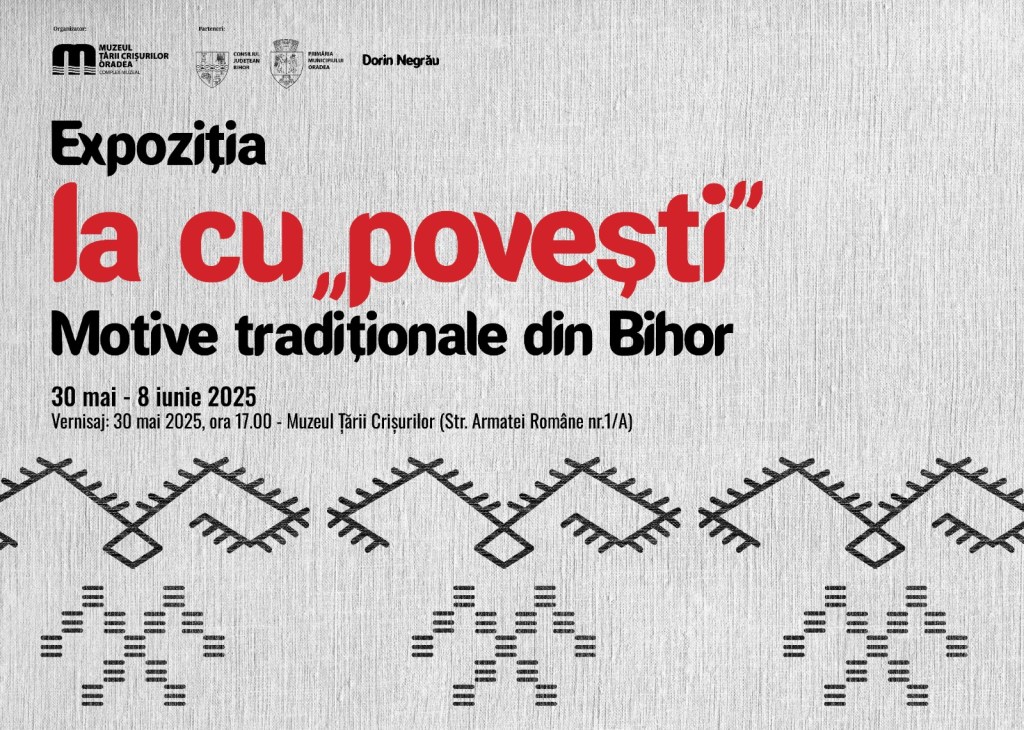 Muzeul Țării Crișurilor Oradea – Complex Muzeal, Consiliul Județean Bihor și Primăria Municipiului Oradea organizează, împreună cu designerul Dorin Negrău și în parteneriat cu Școala Gimnazială Oltea Doamna, Colegiul Național Onisifor Ghibu, Școala Gimnazială nr. 1 Husasău de Tinca și Școala Gimnazială Aurel Pop din Oșorhei, expoziția care va reuni lucrările copiilor participanți la atelierul Ia cu povești – Motive tradiționale din Bihor.