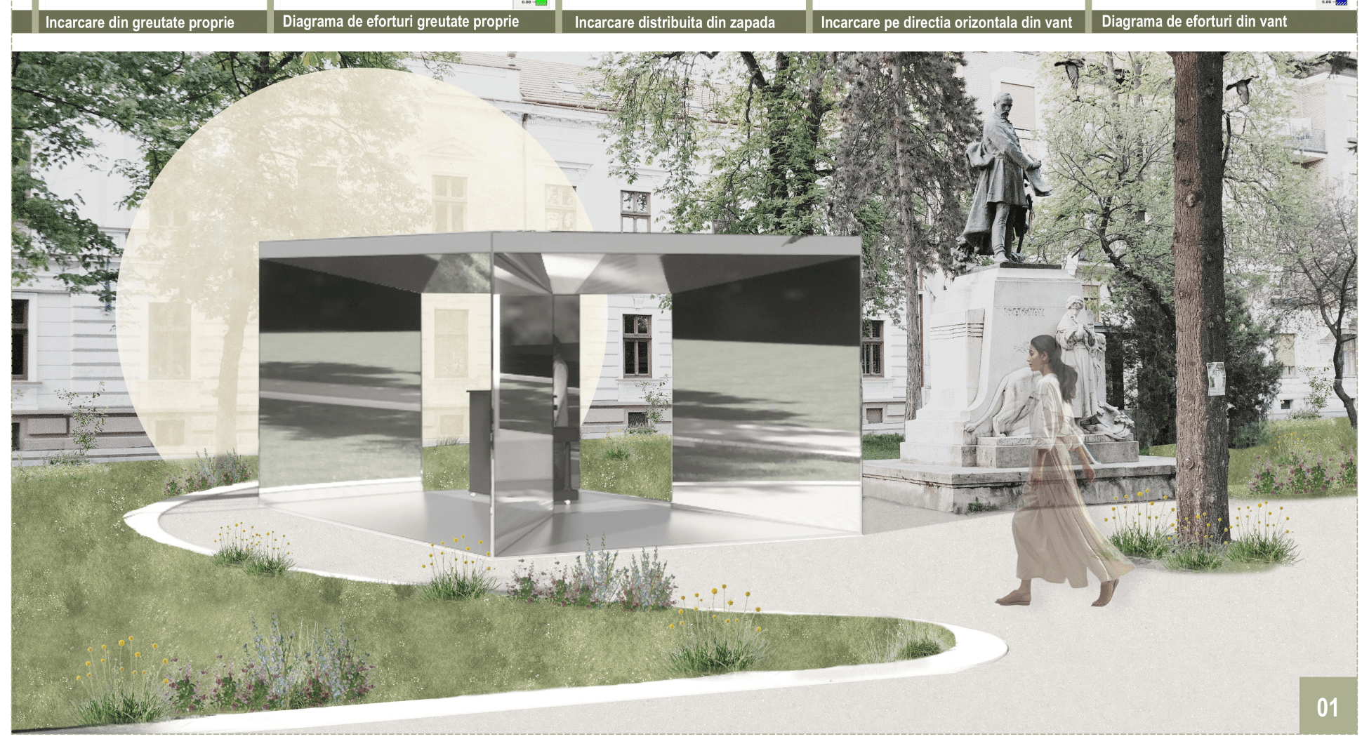 Juriul a desemnat câștigătoare echipa formată din: Ariana Popovici – studentă la Arhitectură, Beniamin Hileaga – student la Arhitectură, Raul Marami – student la Inginerie Civilă. Proiectul poartă titlul Oglindă a timpului – ecou al locului – pavilion sonor și este descris ca fiind „o structurală de mici dimensiuni, dar cu o intensitate culturală și simbolică profundă (…) un loc al exprimării libere, al întâlnirii și al reactivării, prin sunet, a unui spațiu urban cu valoare istorică”.