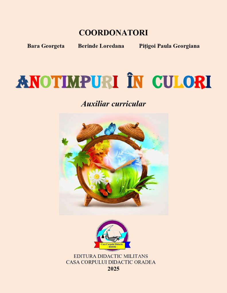 Editura Didactica Militans a Casei Corpului Didactic Bihor vine cu o nouă apariție editorială. Lucrarea intitulată Anotimpuri în culori – coordonată de doamnele Georgeta Bara, Loredana Berinde și Paula Georgiana Pițigoi – reunește contribuțiile unui colectiv de autori care au adunat realizări plastice ale unor elevi talentați de la mai multe unități școlare din Oradea și din județ. Fiecare lucrare este analizată din perspectivă didactică și plastică, iar rezultatul este o mini-galerie de artă, însoțită de un ghid de lectură și interpretare artistică. Redăm în continuare o parte din cuvântul introductiv al cărții, semnat de dna Georgeta Bara, inspector școlar pentru educație timpurie.