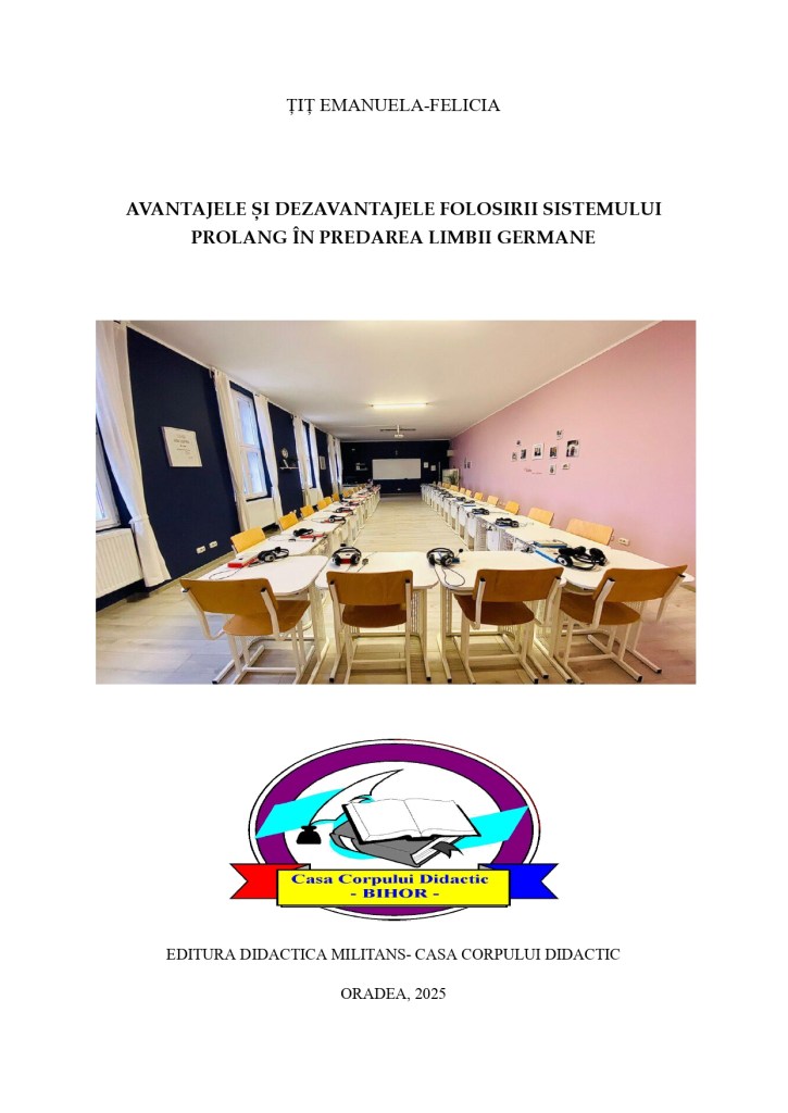 Lucrarea Avantajele și dezavantajele folosirii sistemului ProLang în predarea limbii germane oferă o analiză clară și echilibrată a modului în care tehnologia modernă poate sprijini procesul educațional. Cartea explorează beneficiile practice ale sistemului ProLang, precum corectarea automată a pronunției, feedbackul instant și creșterea motivației elevilor.