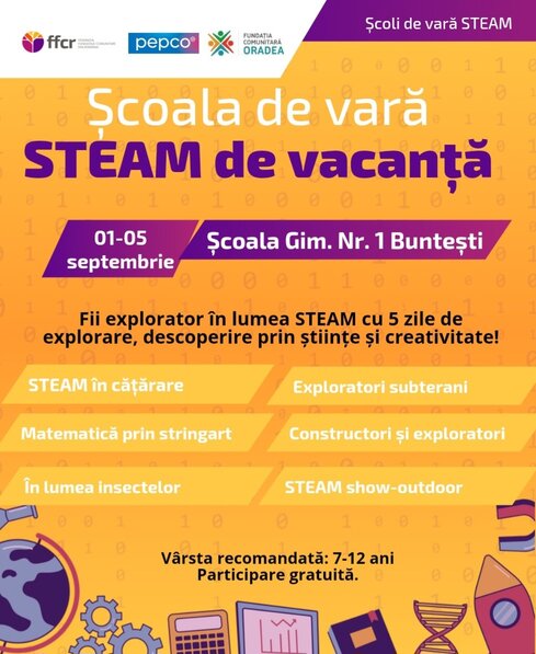 Pe parcursul a cinci zile, elevii vor participa la activități interdisciplinare STEAM (Știință, Tehnologie, Inginerie, Artă și Matematică) și vor învăța să înțeleagă lumea din jurul lor, să fie creativi și să aplice ce învață în situații reale, iar prin experimente, jocuri și proiecte de echipă, vor descoperi bucuria de a învăța și de a lucra împreună.