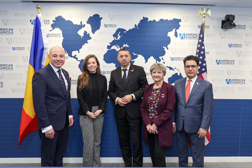 Foto generic: Ceremonia oficială de semnare a acordului FLEX România – SUA, 24 noiembrie 2025. De la dreapta la stânga: Remus Pricopie – rectorul SNSPA, fost ministru al Educației, Lisa Choate – President și CEO, American Councils for International Education, Daniel-David – ministrul Educației și Cercetării din România, Stefanie Williams – Deputy Assistant Secretary for Professional and Cultural Exchanges, Departamentul de Stat SUA, Andrei Muraru – ambasadorul României în SUA. Sursă imagine: americancouncils.org