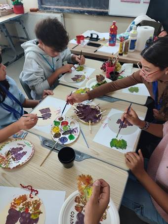 Atelierele au cuprins activitățile de colorare a steagului fiecărei țări pe nufărul, în prealabil, desenat, atelierul de coasere în punct X pe lemn, de colorare a unor linguri de lemn, de realizare a unor semne de carte cu motive tradiționale românești, șezătoare cu cântec, joc, spart de nuci etc. Elevii si profesorii au participat la spectacolul de teatru experiential și psihodramă. Elevii s-au întrecut folosind un material realizat în Kahoot pe tema Toamnei. Vânătoarea de comori a antrenat elevii în activități fizice în a găsi săculeți cu elemente din natură pe care elevii i-au folosit pentru a crea elemente decorative pentru casă.