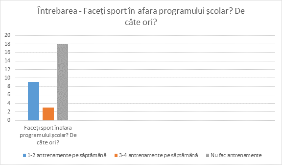 - Faceți sport în afara programului școlar? Dacă da, atunci de câte ori mergeți la antrenament pe săptămână?