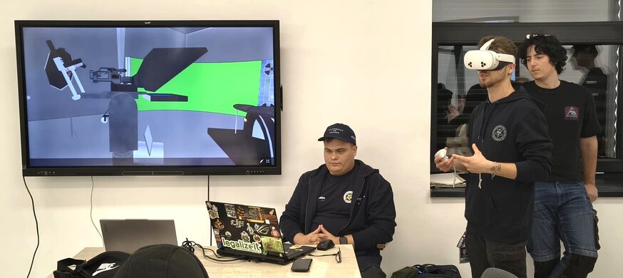 Un profesionist al imaginii, studentul Alexandru Șorian a „mobilat” studioul virtual chiar mai bine decât a făcut-o Inteligența Artificială (AI). Astfel că studenții de la Jurnalism au avut ocazia ca, punându-și ochelarii de realitate virtuală (VR) să pășească