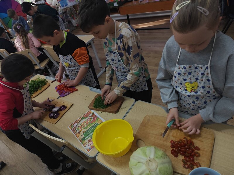 Cu multă atenție și creativitate, copiii au pregătit patru salate inspirate de anotimpuri: salata de primăvară, de vară, de toamnă și de iarnă. Ingredientele folosite au fost variate și sănătoase: morcovi, salată verde, varză, ceapă roșie și verde, roșii, ardei, ridichi, castraveți și țelină. Fiecare echipă a personalizat preparatele adăugând, după preferințe, ouă fierte, iaurt, maioneză proaspătă, prosciutto sau mușchi file afumat, parmezan sau telemea, dar și baghete, crutoane ori pâine prăjită.